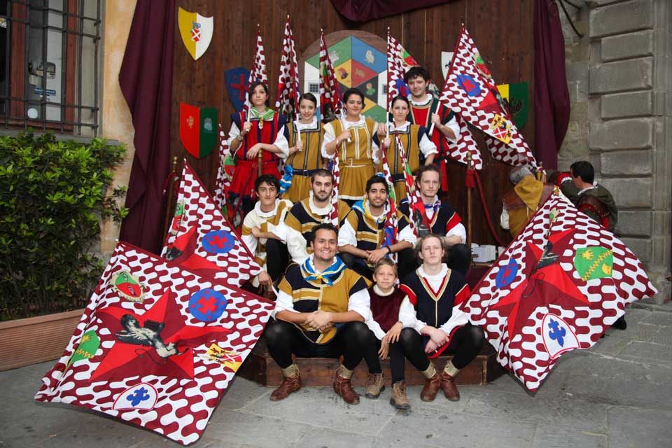 Gli Sbandieratori rappresentano il fiore all’occhiello del Gruppo Storico della Città di Cortona. Il loro intento è quello di insegnare a giovani allievi l’antica Arte della Bandiera, espressione e simbolo di sani principi come la lealtà, la correttezza, la fratellanza, l’amore, l’onore e lo spirito di gruppo. Caratteristica peculiare che contraddistingue la Compagnia Sbandieratori è quella di esibirsi in esercizi di alto contenuto tecnico ed atletico, sia con la bandiera corta, sia con bandiere di 4m di lunghezza, molto suggestive e coreografiche.